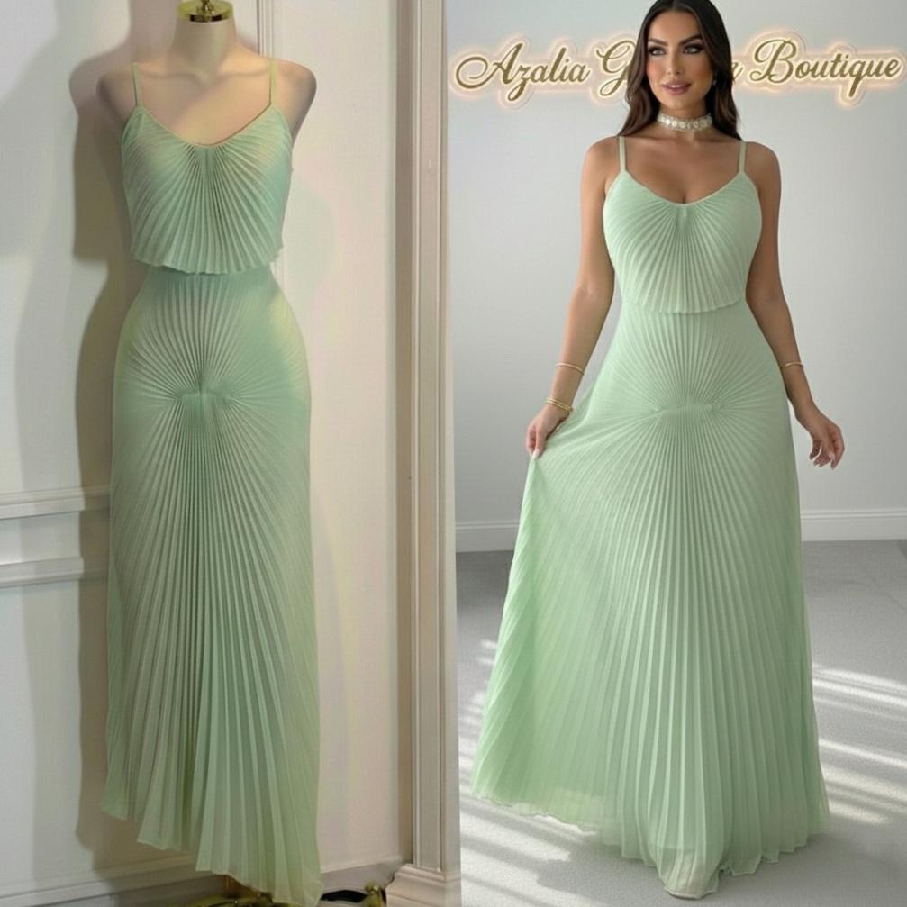 El Vestido Celestial Menta es una opción fresca, elegante y llena de encanto, ideal para lucir radiante en cualquier ocasión especial. Confeccionado en tela plisada ligera, su diseño destaca por su caída fluida y movimiento delicado que aporta un estilo sofisticado y femenino.