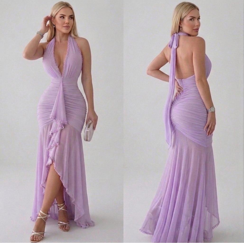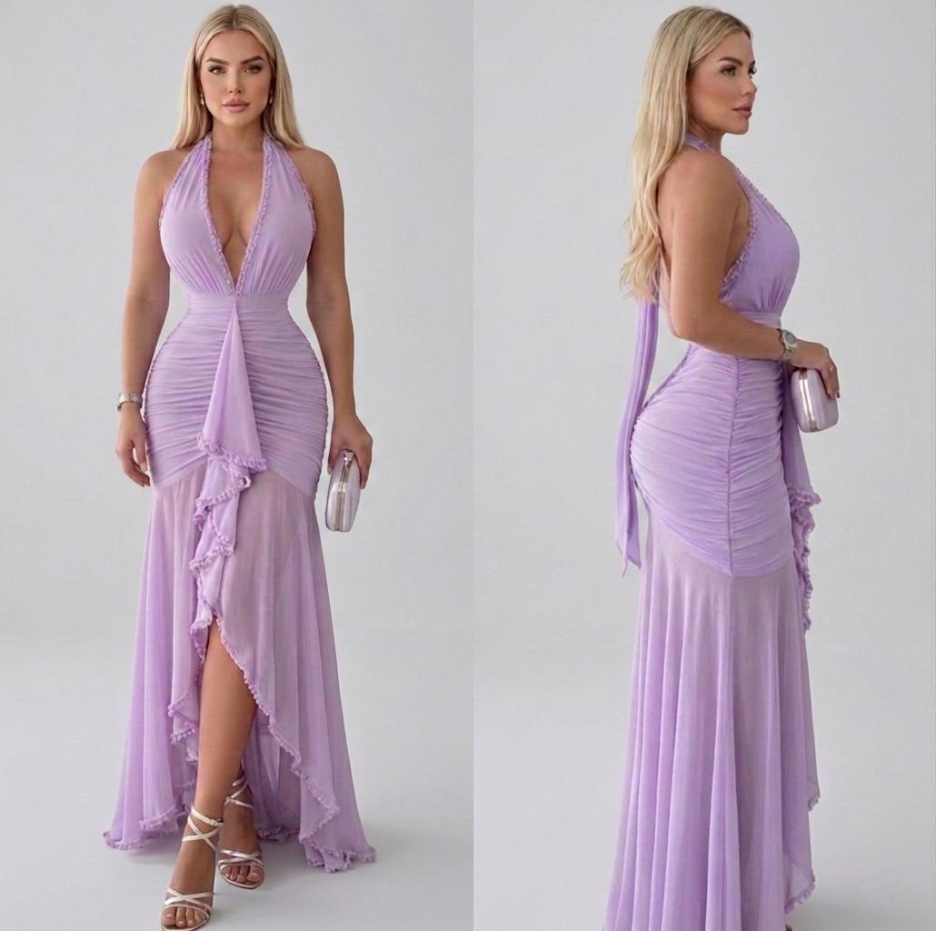 El Vestido Dalila Lila es la definición perfecta de elegancia y sensualidad en un solo diseño. Con un delicado tono lila que transmite feminidad y sofisticación, este vestido destaca por su escote halter profundo que estiliza el cuello y realza la figura con un ajuste impecable en la cintura.