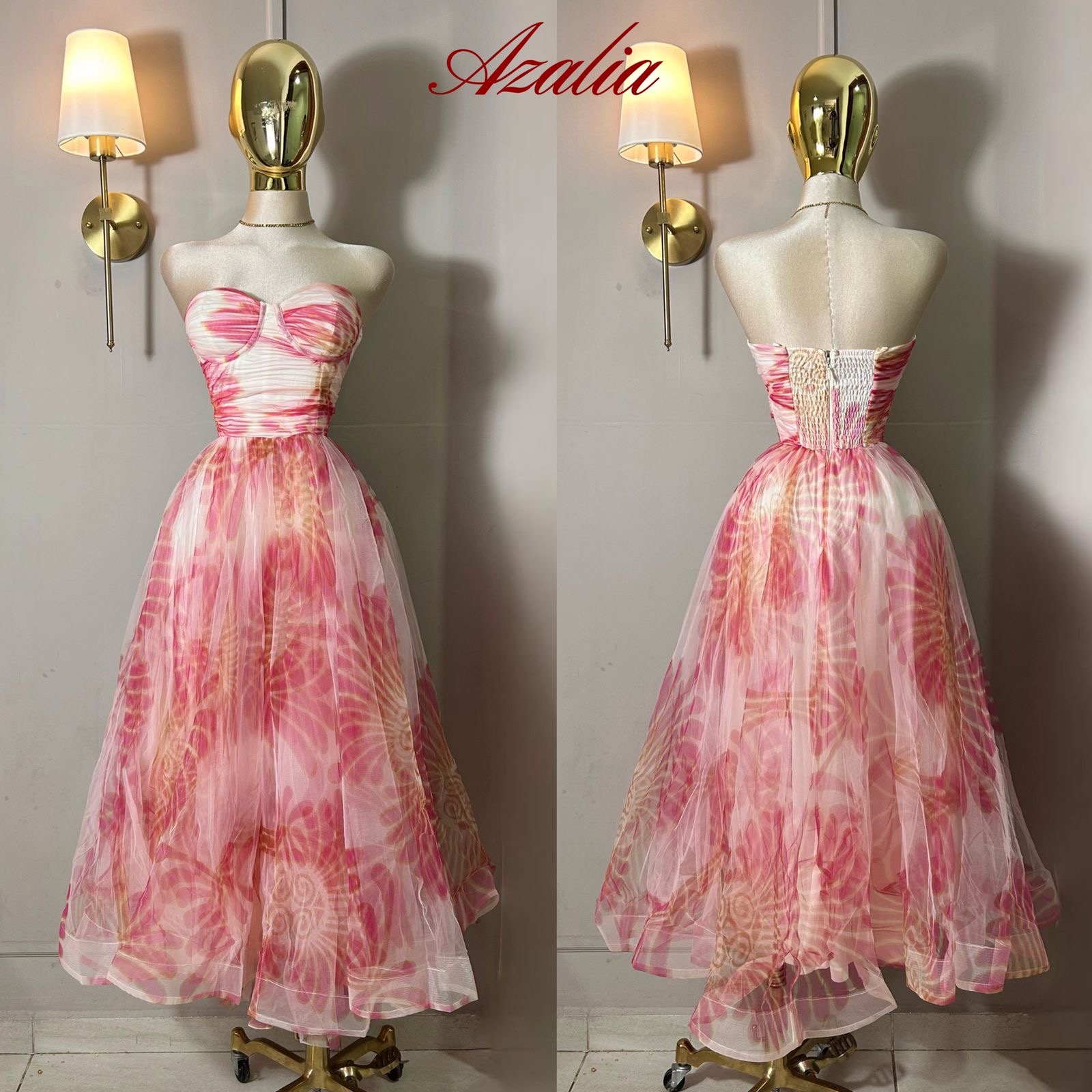 El Vestido Dulce Dream es la definición perfecta de elegancia romántica y frescura femenina. Su diseño strapless con copas estructuradas realza el busto con delicadeza, mientras su corte a la cintura estiliza la figura y crea una silueta encantadora.