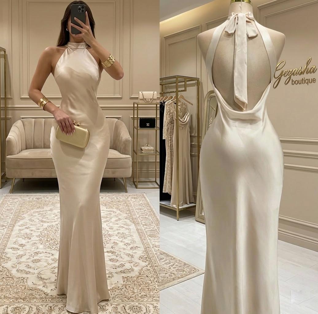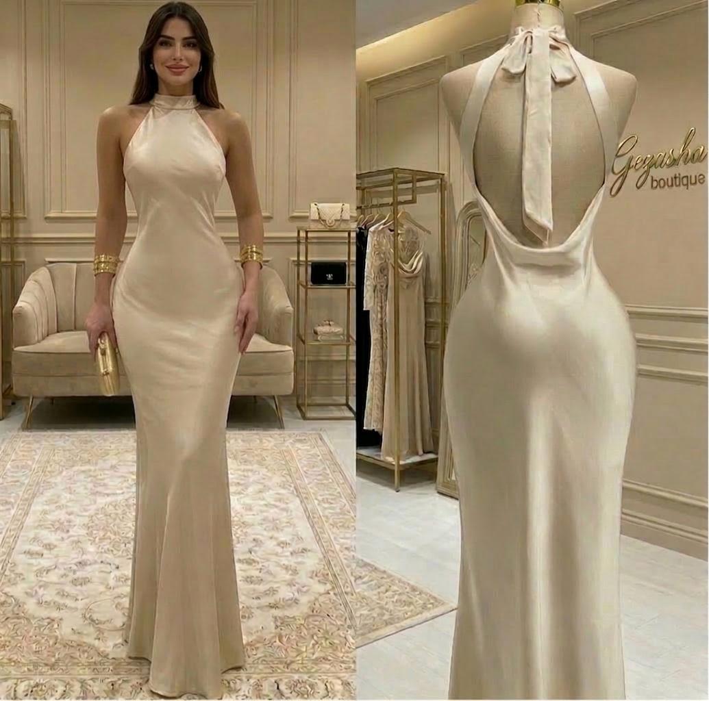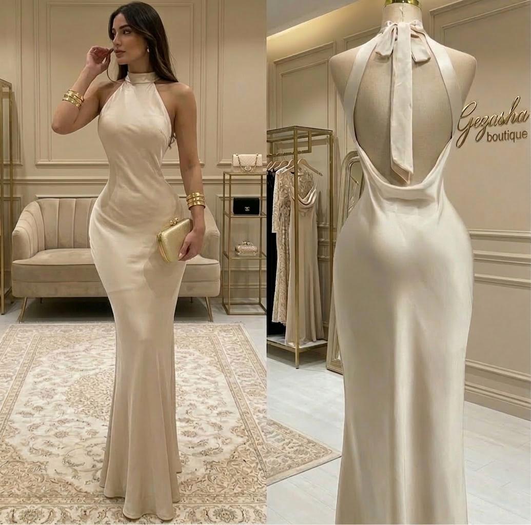 • Tejido Premium: Elaborado en una tela satinada de alta calidad en tono beige champagne, perfecta para eventos de gala, bodas o cenas de etiqueta.